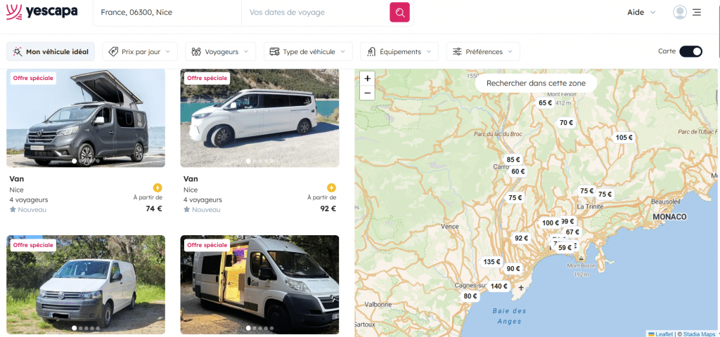 Les loueurs spécialistes du van aménagé sont peu nombreux autour de Nice et il est donc important de réserver à l’avance, surtout en haute saison (juin à septembre).